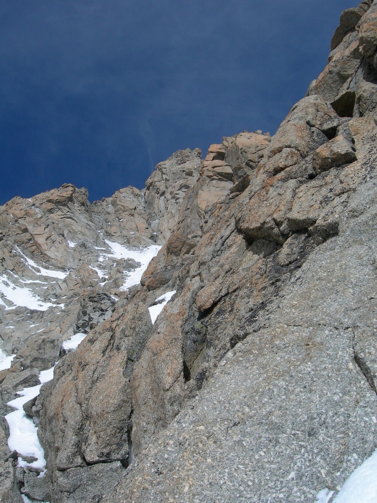 sx del canalino centrale una crestina nevosa sopra le rocce. A destra della