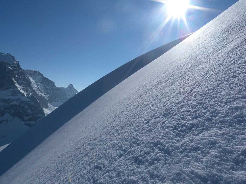 Informazioni: 4000m facile e molto frequentato. Il ghiacciaio fino alla schiena d'asino è un po' crepacciato ma