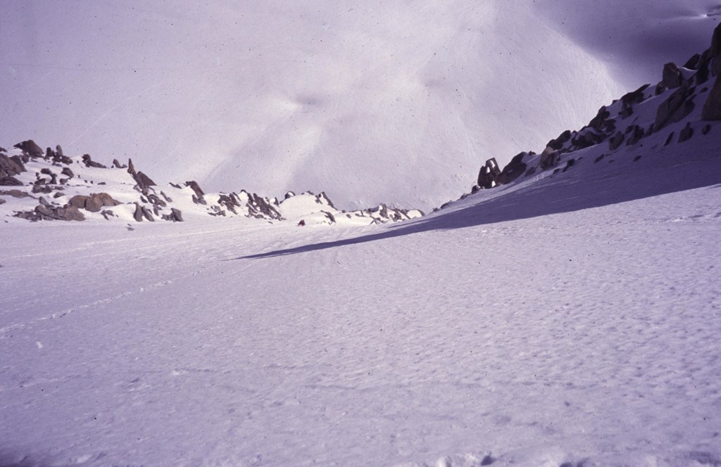 dell'evidente (di notte ?) couloir (ore 4.00). Qui sci sullo zaino, e abbiamo