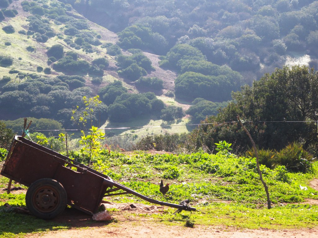 paesaggi tra il verde e l'ocra con la Rat imbiancata alle spalle e i mandorli in