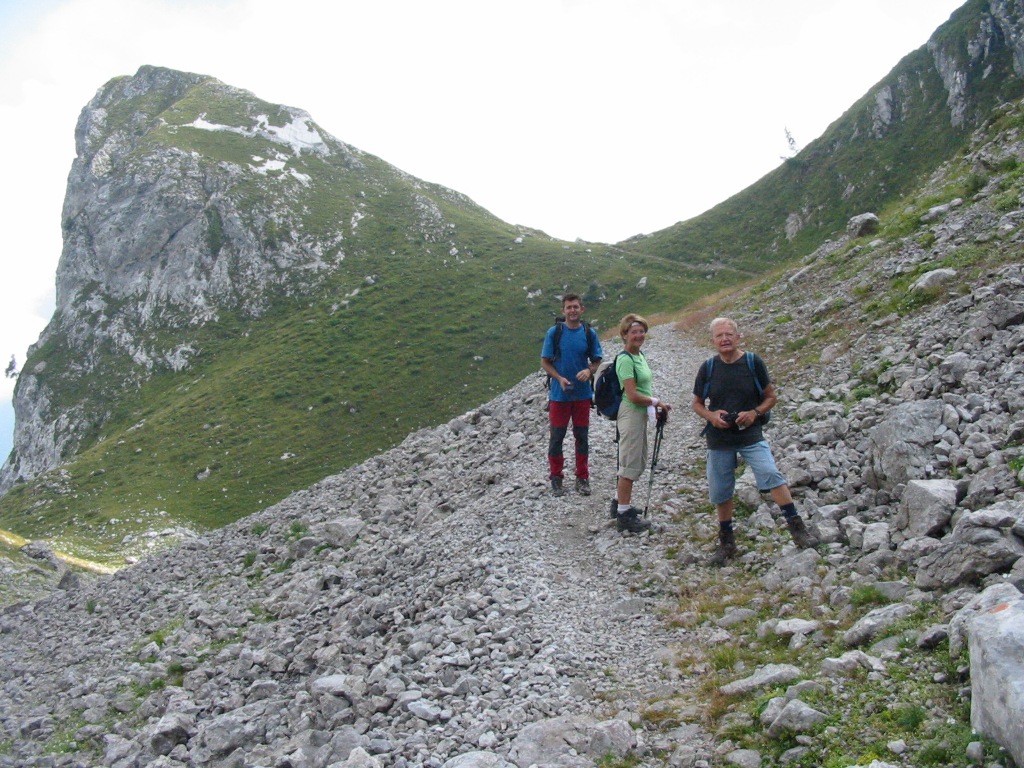Informazioni: Bella e classica escursione. Richiede piede sicuro e assenza di vertigini. Non ci sono passaggi difficili. Da Carbonera salire per sentiero o passando sotto il rif. Albani (sent. 403) o direttamente salendo al Colle Della Guaita (sent. 402). Possibile anche salire in seggiovia e traversare fino al rif. Albani. Quindi dirigersi verso il Lago di Polzone e di qui al Colle della Guaita. Proseguire su sentiero e salire per un ghiaione sulla dx ripido. Qui le scale e i corrimani vi conducono alla Porta. Per rampa un po' franosa (cavi non completamente installati, fittoni) scendere sul ghiaione e di qui prendere per sentiero fino alla cima del Monte Visolo (a sx al bivio). Dalla cima scendere per il pendio e la costa poi tenere la destra fino alla Malga Cassinelli. Da qui scendere al Passo.