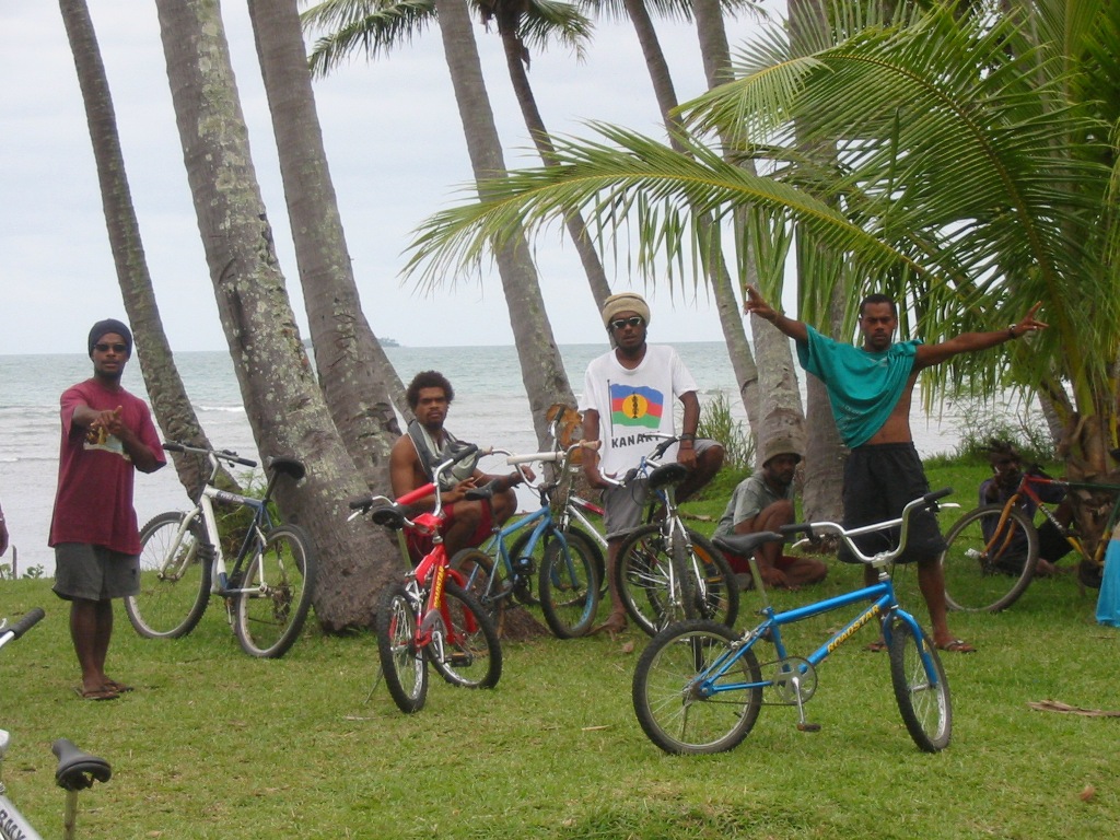 Gruppo di Kanak nella loro tribù. Il senso di appartenenza alla terra e il desiderio di indipendenza dalla Francia è molto forte tra i giovani anche se totalmente incapaci di gestire la loro vita e quella economica del paese. Sotto i due estremi delle attività delle donne